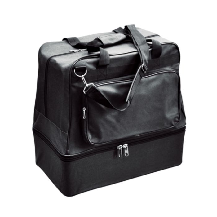 Borsa in tessuto di cordatura 620 con tasca esterna, cerniere rinforzate antishock, bauletto, portascarpe separabile e cinghia a tracolla.