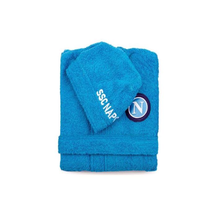| Dettagli | NAPOLI ACCAPPATOIO DA ADULTO IN COLORAZIONE AZZURRO, LATO CUORE CON LOGO UFFICIALE APPLICATO,