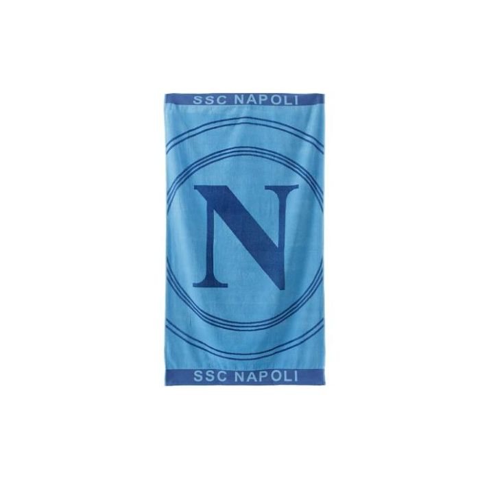 NAPOLI TELO MARE/PISCINA REALIZZATO IN COLORAZIONE AZZURRO CON LOGO UFFICIALE E SCRITTA SSC NAPOLI MONOCOLORE, BORDI IN COLORAZIONE A CONTRASTO.