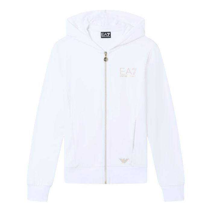 Felpa con cappuccio e pratica chiusura con zip, realizzata in misto viscosa stretch. Un capo confortevole e versatile, ideale per l'allenamento o il tempo libero. Caratterizzata dal logo EA7 realizzato con micro borchie che donano un tocco di luce al capo. Una proposta versatile e comoda che si adatta a molteplici occasioni d'uso.