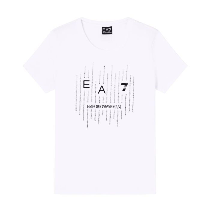 Una T-shirt realizzata in morbido jersey stretch. Il modello si caratterizza per il logo EA7 a contrasto e gli inserti in paillettes che donano un tocco di luce, rendendola perfetta sia per l'allenamento che per un look casual e ricercato.