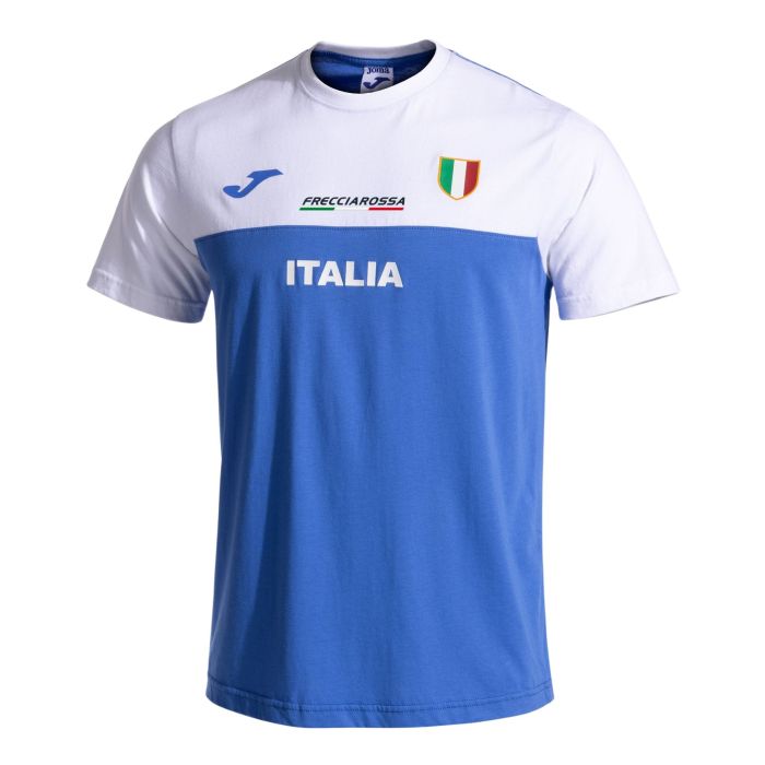 Maglietta a manica corta da uomo. Appartiene alla collezione da passeggio di FIDAL. Si tratta di una maglietta realizzata al 100% in cotone con i colori caratteristici della Federazione Italiana di Atletica Leggera.