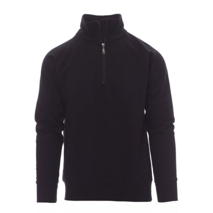 Felpa da uomo, mezza zip in tinta, in plastica con cursore in metallo, manica raglan, polsini e vita in costina elasticizzata, cuciture rinforzate.