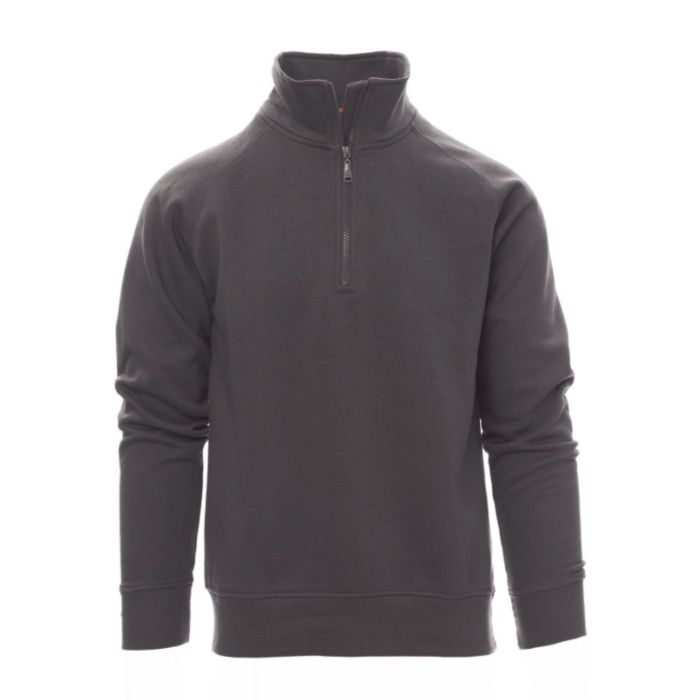 Felpa da uomo, mezza zip in tinta, in plastica con cursore in metallo, manica raglan, polsini e vita in costina elasticizzata, cuciture rinforzate.