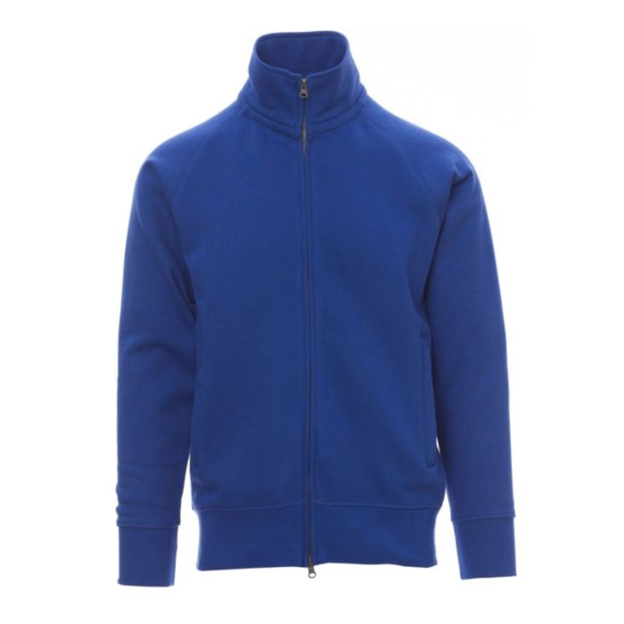 Felpa da uomo, zip intera SBS coperta, in plastica con doppio cursore in metallo, manica raglan, due tasche con zip coperte, polsini e vita in costina elasticizzata, cuciture rinforzate.