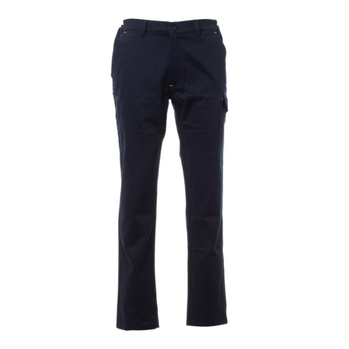 Pantalone invernale con passanti ed elastico in vita, chiusura con zip e bottone. Due tasche anteriori a taglio classico, taschino porta monete, porta metro laterale dx, tasca laterale sx con patta di chiusura LOCK SYSTEM, due tasche posteriori di cui una con patta e velcro. Cuciture a triplo ago.