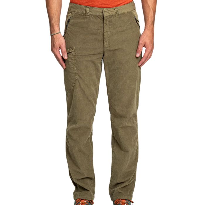 Solitudine è un pantalone in tessuto di velluto a coste leggero, dai colori scelti con cura per evocare i colori della terra e della natura. Particolarmente confortevole da indossare, presenta una chiusura in vita con bottone a pressione nascosto e zip. Le tasche in vita e la tasca sulla gamba destra hanno una chiusura con zip; mentre le tasche posteriori si chiudono grazie ad un bottone a pressione nascosto.