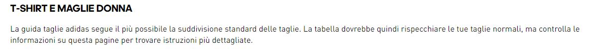 TABELLA TAGLIE ADIDAS DONNA